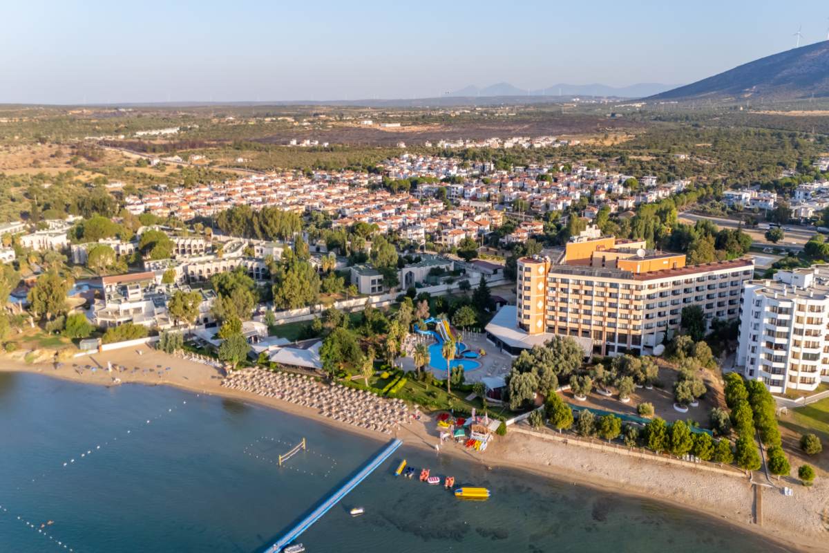 The Holiday Resort; Ege’nin berrak deniziyle çevrili, mavi bayraklı özel plajı, geniş aile odaları, çocuk dostu olanakları ve her şey dahil konseptiyle misafirlerine unutulmaz bir tatil deneyimi sunan modern bir tatil tesisidir. Tesisimiz, doğayla iç içe konumu, geniş yeşil alanları ve denize sıfır lokasyonu sayesinde hem huzurlu hem eğlenceli bir tatil arayan misafirler için ideal şekilde tasarlanmıştır.